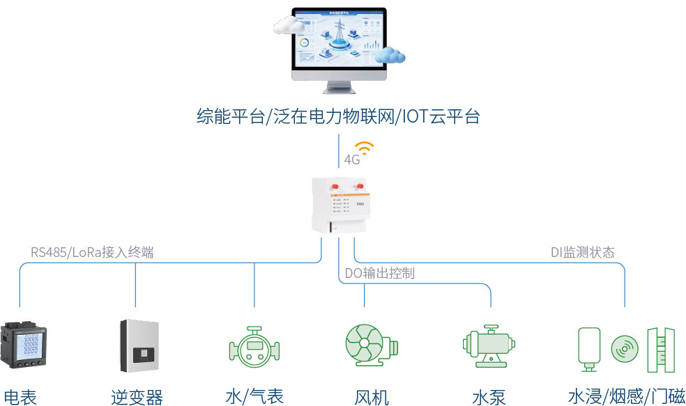 产品采用高集成ARM芯片,具有高性能、低功耗、实时数据采集,实时数据监控、设备便捷管理等特点,是用于物联网边缘节点的通信枢纽,实现末端设备全面感知、快速接入、边缘计算及逻辑控制、数据加密上云、远程调试及设备运维功能,广泛应用于建筑能耗系统,电力监控,电力需求侧,电网综能平台,泛在电力物联网等场景。