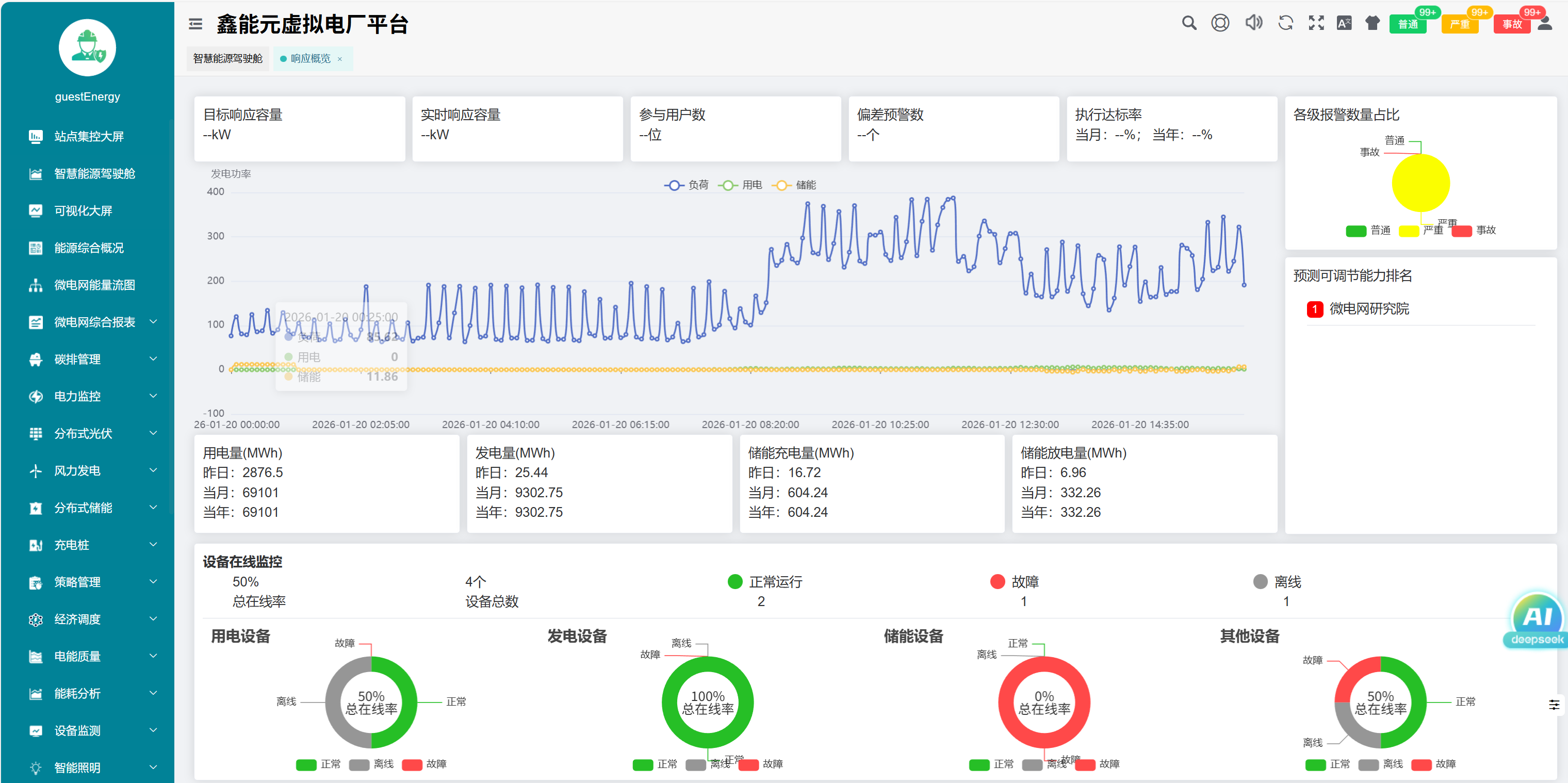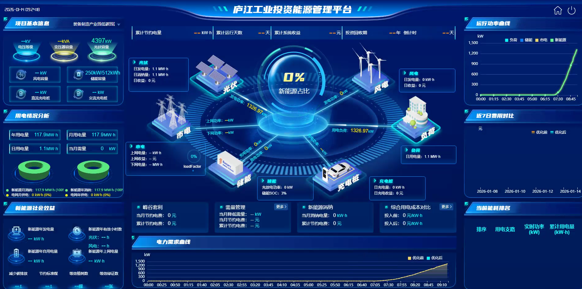 计划曲线通过为储能系统预先设定不同时间段的固定充放电功 率,实现对电能精准的时序规划与功率控制。例如,在电价高峰时段 放电、低谷时段充电,利用电价差实现“峰谷套利”。该策略是实现 电费优化、提升用能经济性的核心手段。